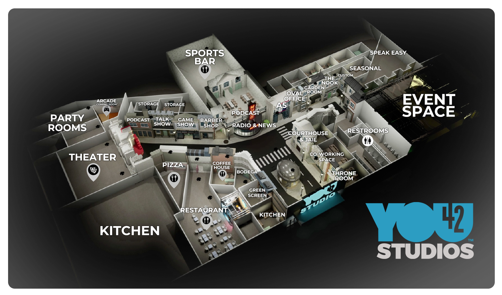 From the ground up, You42 Studios was built to enhance your creative experience. We consulted with artists and professionals to design spaces that fit the needs of today’s creator. You can record, eat, drink, relax, and maybe even catch a performance, all at a single, welcoming location.